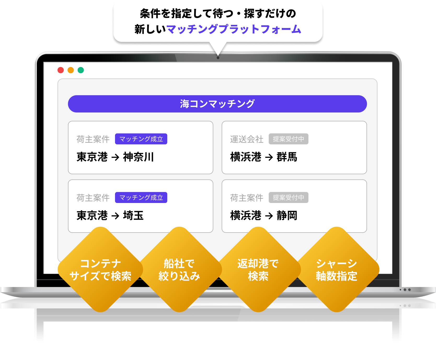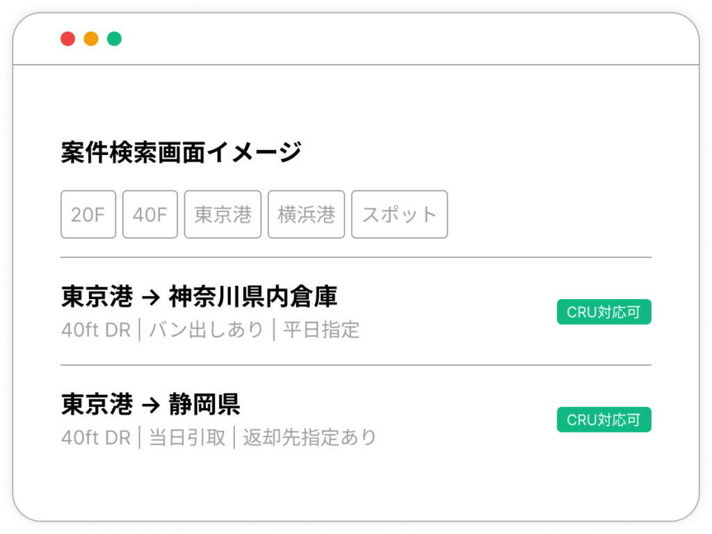 案件を出せば、運送会社が探しに来る。海上コンテナ輸送の新しい手配のカタチ。